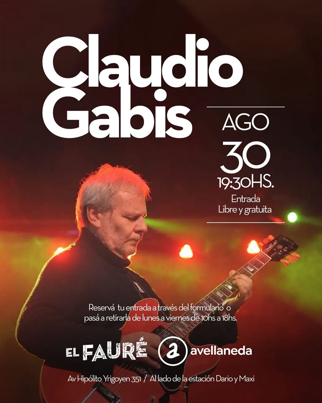 Además, se anuncia la llegada de una leyenda del rock nacional: ⭐ Claudio Gabis se presentará el viernes 30 de agosto
