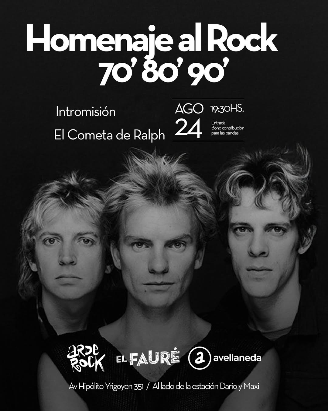 - 🎸 Domingo 24 de agosto – Homenaje al Rock de los 70, 80 y 90 A cargo de @intromision.oficial y @elcometaderalph