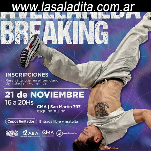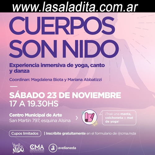 21/11 "Avellaneda Breaking", clases y entrenamiento 22/11 "Jazz en movimiento", presentado por Avellaneda Big Band para celebrar el Día de la Música 23/11 ♂️ "Los cuerpos son nido", experiencia inmersiva de yoga, canto y danza